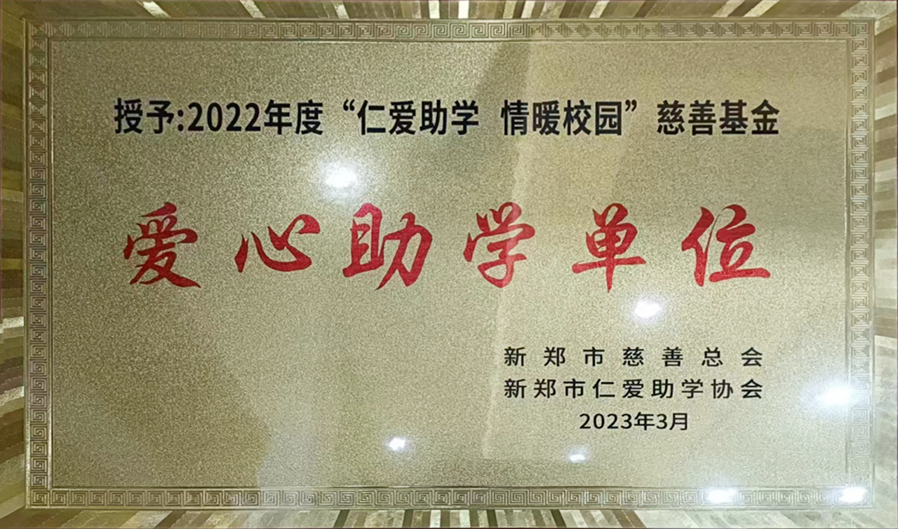 荣获 2022年度 “仁爱助学 情暖校园”慈善基金爱心助学单位