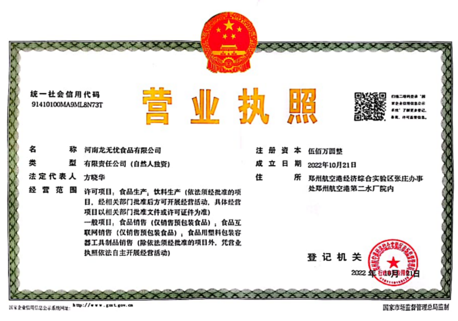 发证单位:郑州航空港经济综合实验区市场监督管理局